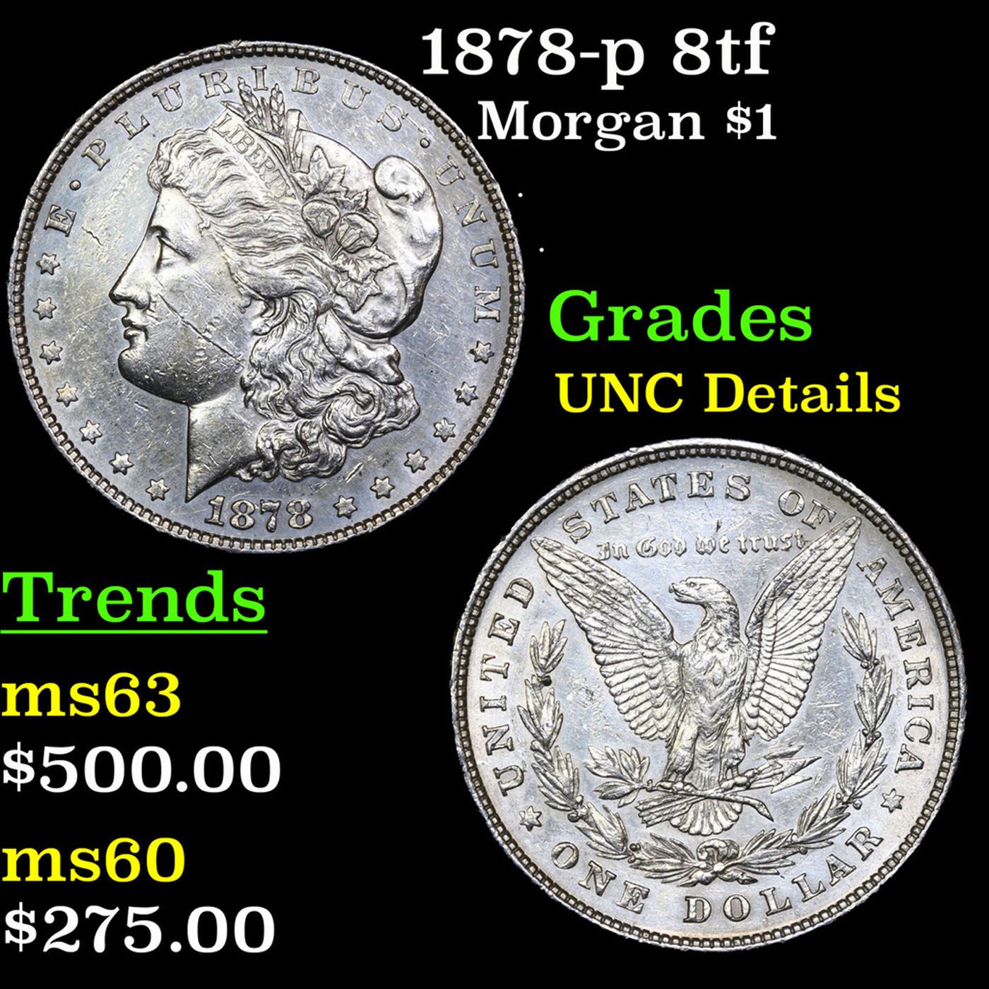 1878-p 8tf Morgan Dollar $1 Grades Unc Details.