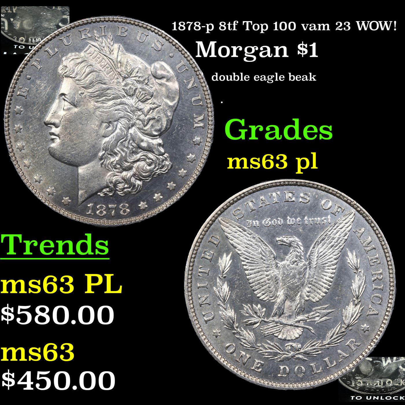 1878-p 8tf Top 100 vam 23 WOW! Morgan Dollar $1 Grades Select Unc PL.