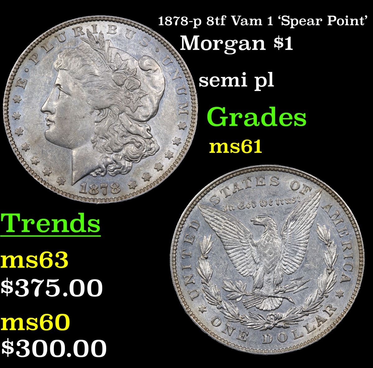 1878-p 8tf Vam 1 'Spear Point' Morgan Dollar $1 Grades BU+.