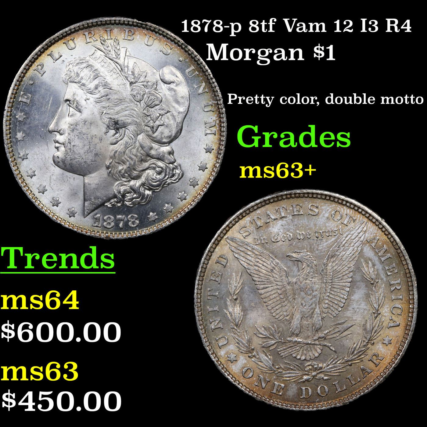 1878-p 8tf Vam 12 I3 R4 Morgan Dollar $1 Grades Select+ Unc.
