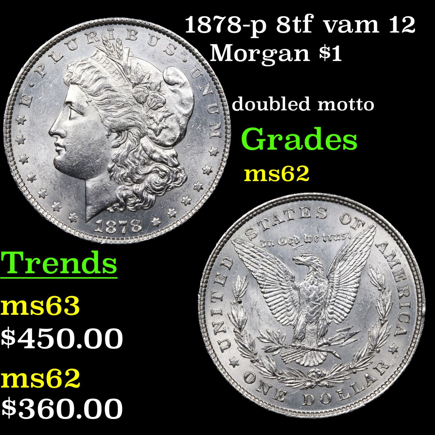 1878-p 8tf vam 12 Morgan Dollar $1 Grades Select Unc.