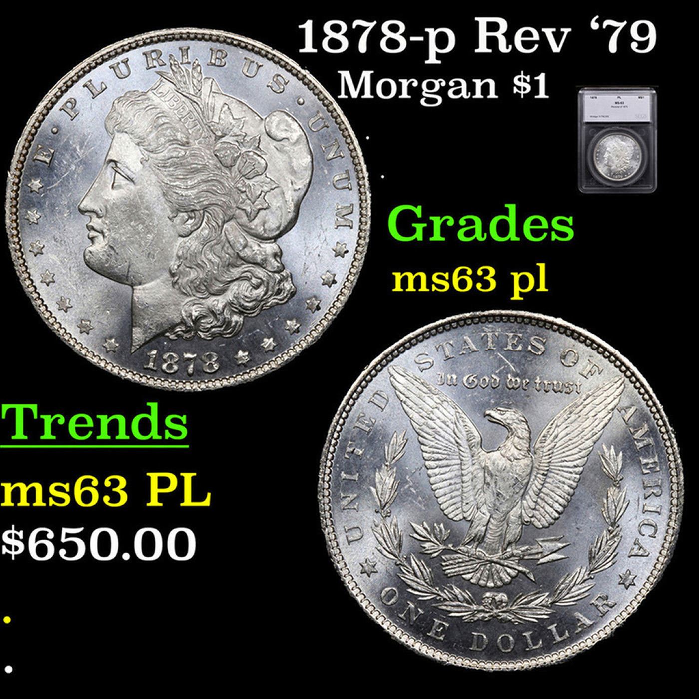 1878-p Rev '79 Morgan Dollar $1 Graded ms63 pl By SEGS.