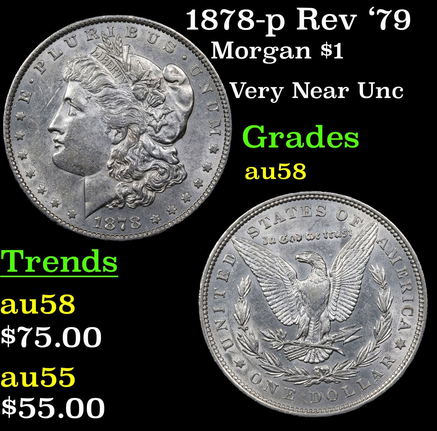1878-p Rev '79 Morgan Dollar $1 Grades Choice AU/BU Slider.