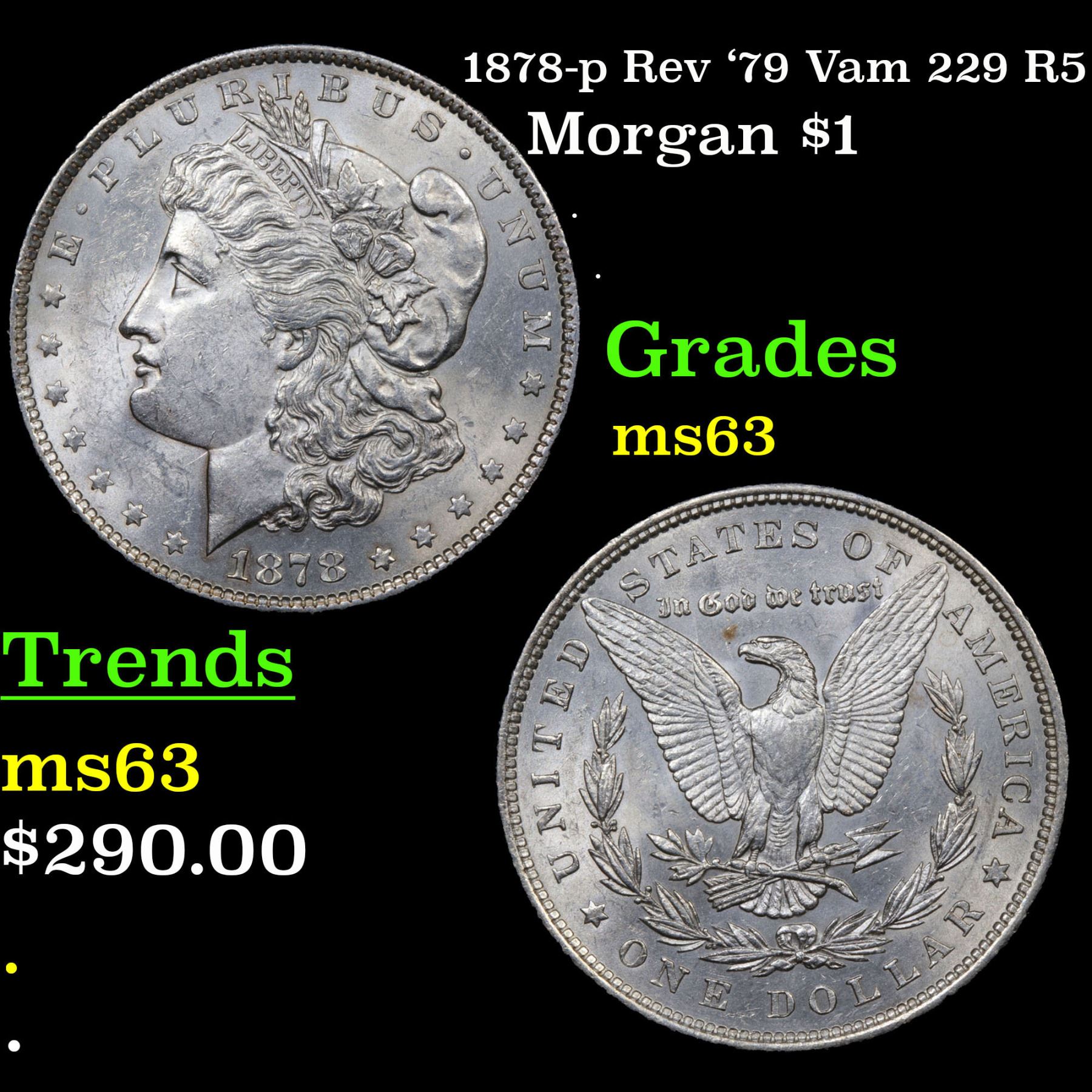 1878-p Rev '79 Vam 229 R5 Morgan Dollar $1 Grades Select Unc.