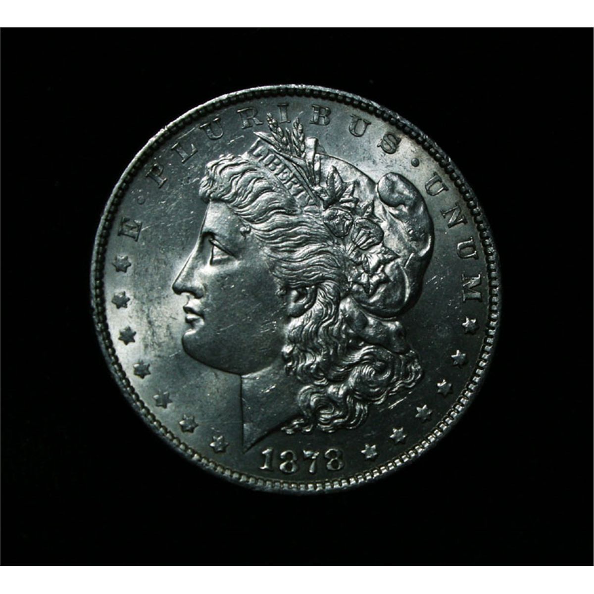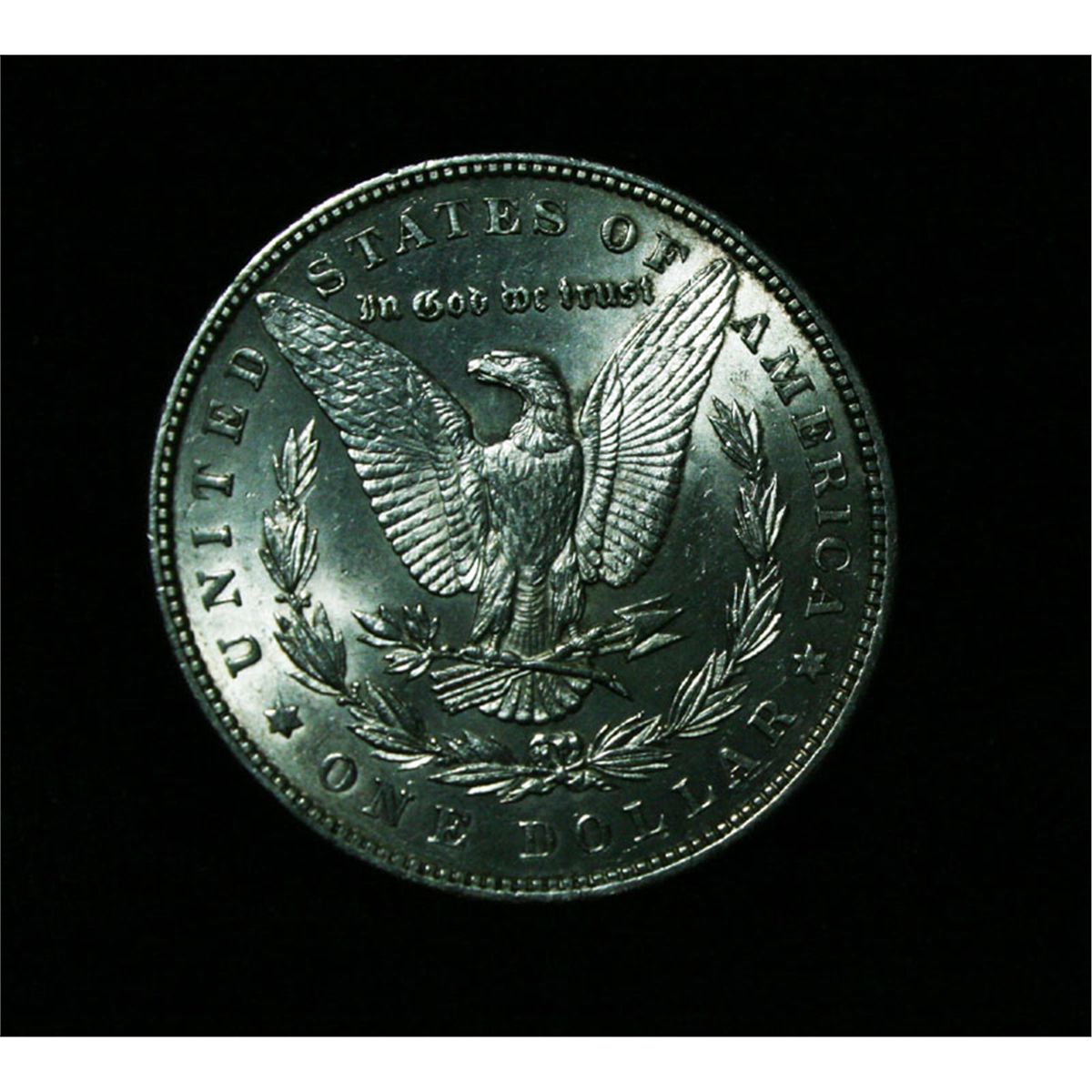 A nice blast white example of the first year of the Morgan dollar series with nice luster. This is a TOP 100 VAM. The VAM 223 which has the "Washed out L, Doubled Lower Reverse". This is an I-5, R-5. That means it has an Interest level of 5 out of 5 which makes it a highly sought after variety and a Rarity of 5. This is a tough variety to find. NGC's Price Guide lists ms64 at $244 and The Wholesale Greysheet lists ms64 at $200. Estimated Value $225