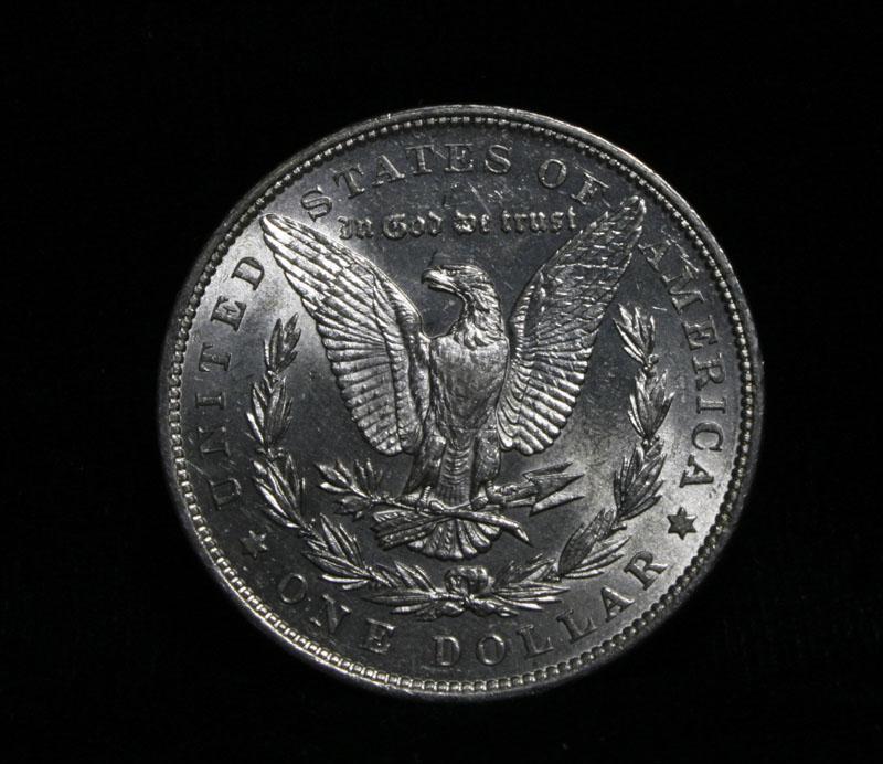 Nice White Example of the Third Reverse of this inaugural year of the Morgan Dollar Series. Nice Luster, good Strike. Coin World's Coin Values lists ms63 at $225 and The Wholesale Greysheet Value of ms63 at $150. Estimated Value $160