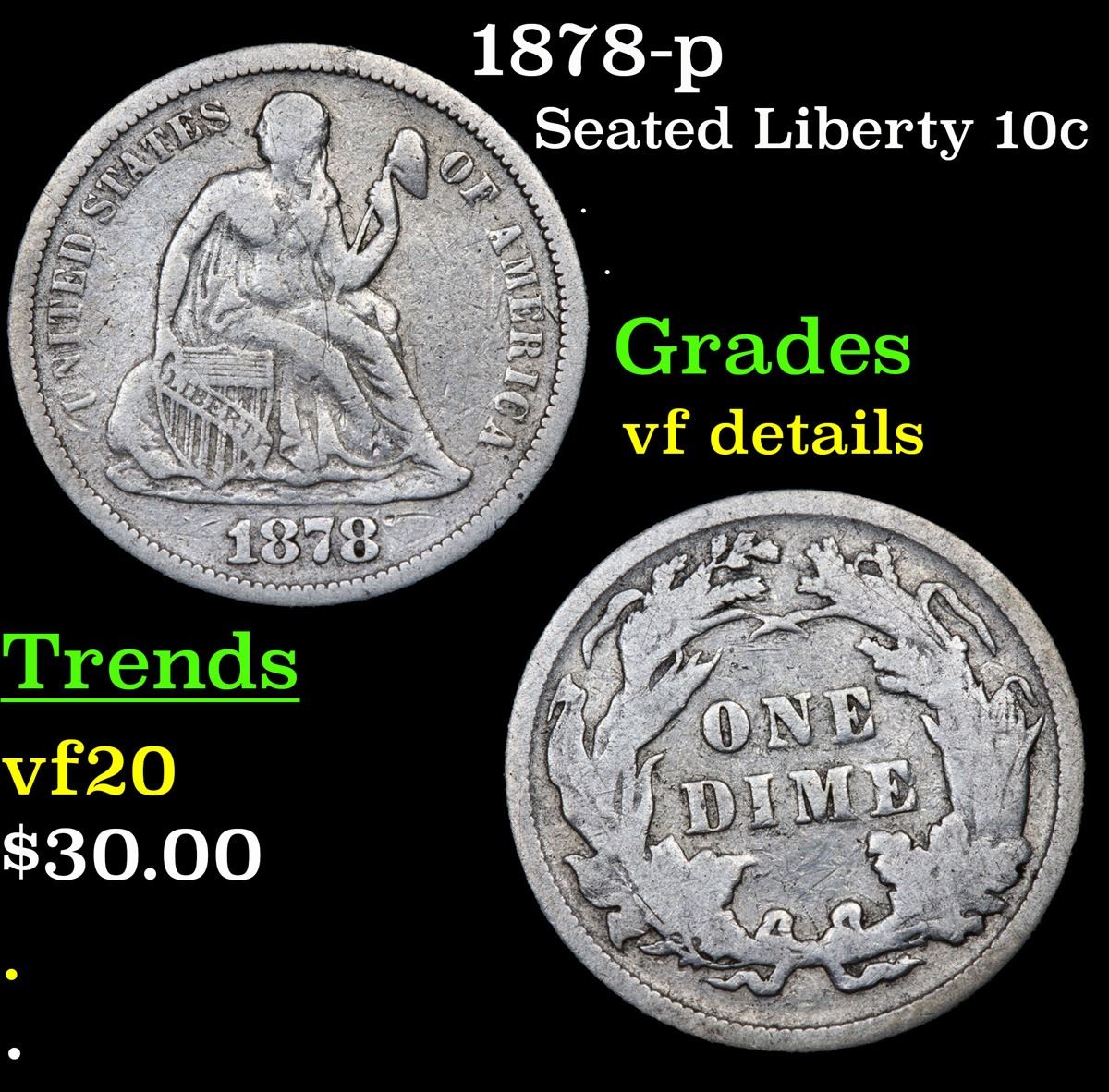 1878-p Seated Liberty Dime 10c Grades vf details.