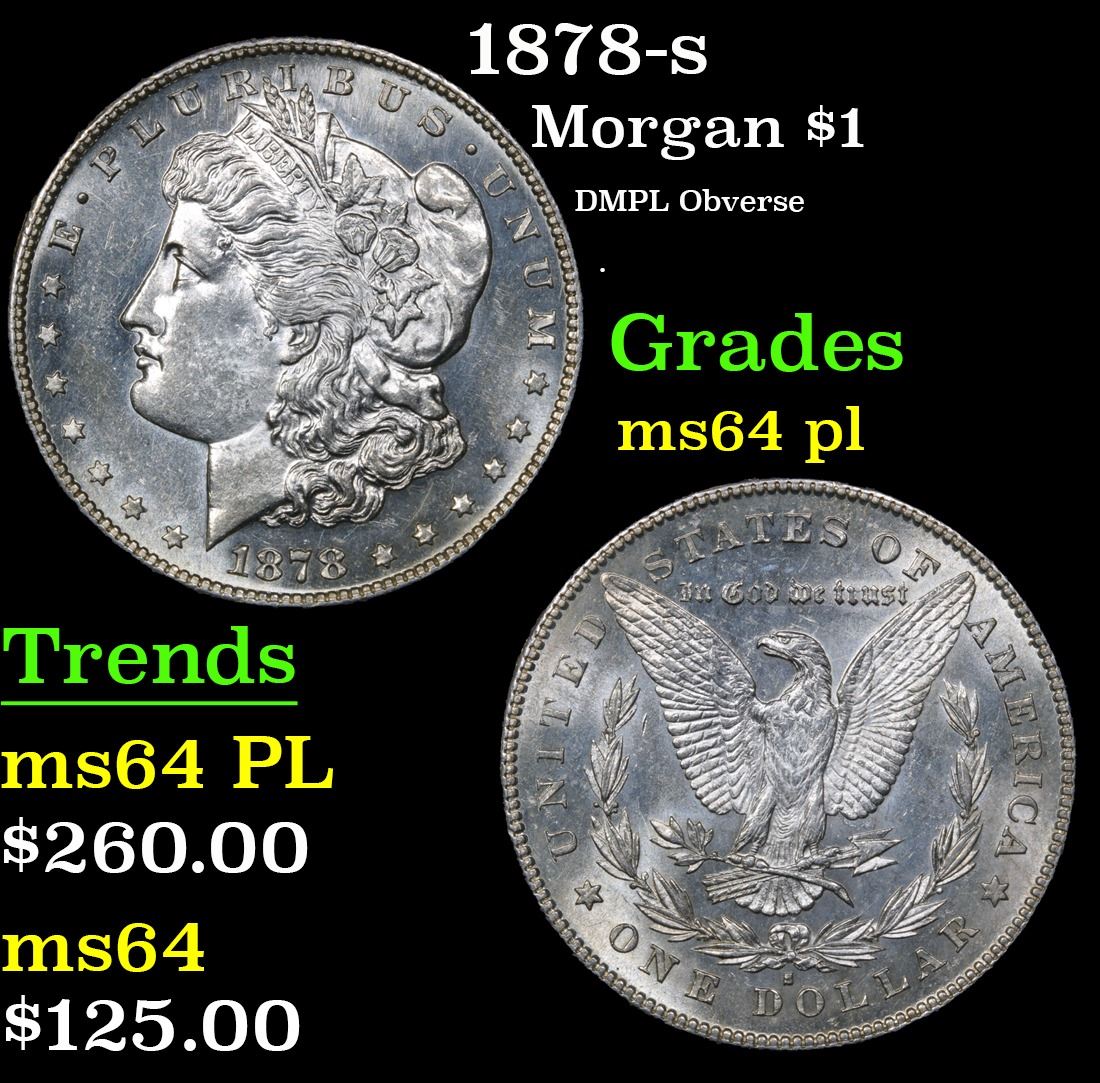 1878-s DMPL Obverse . Morgan Dollar $1 Grades Choice Unc PL. Slightly better date. First year of issue. A Corey's Pick