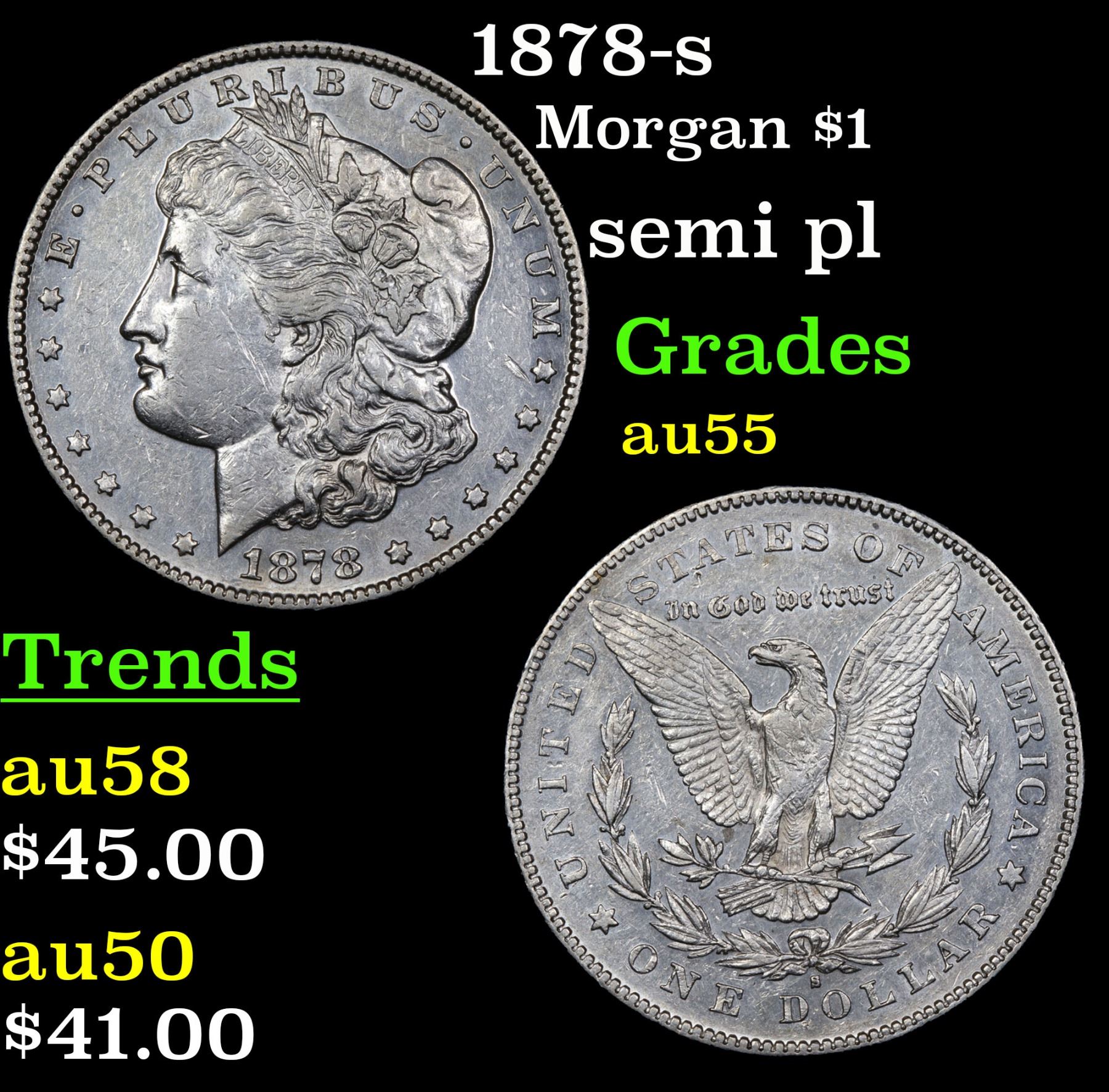 1878-s semi pl Morgan Dollar $1 Grades Choice AU. Slightly better date. First year of issue.