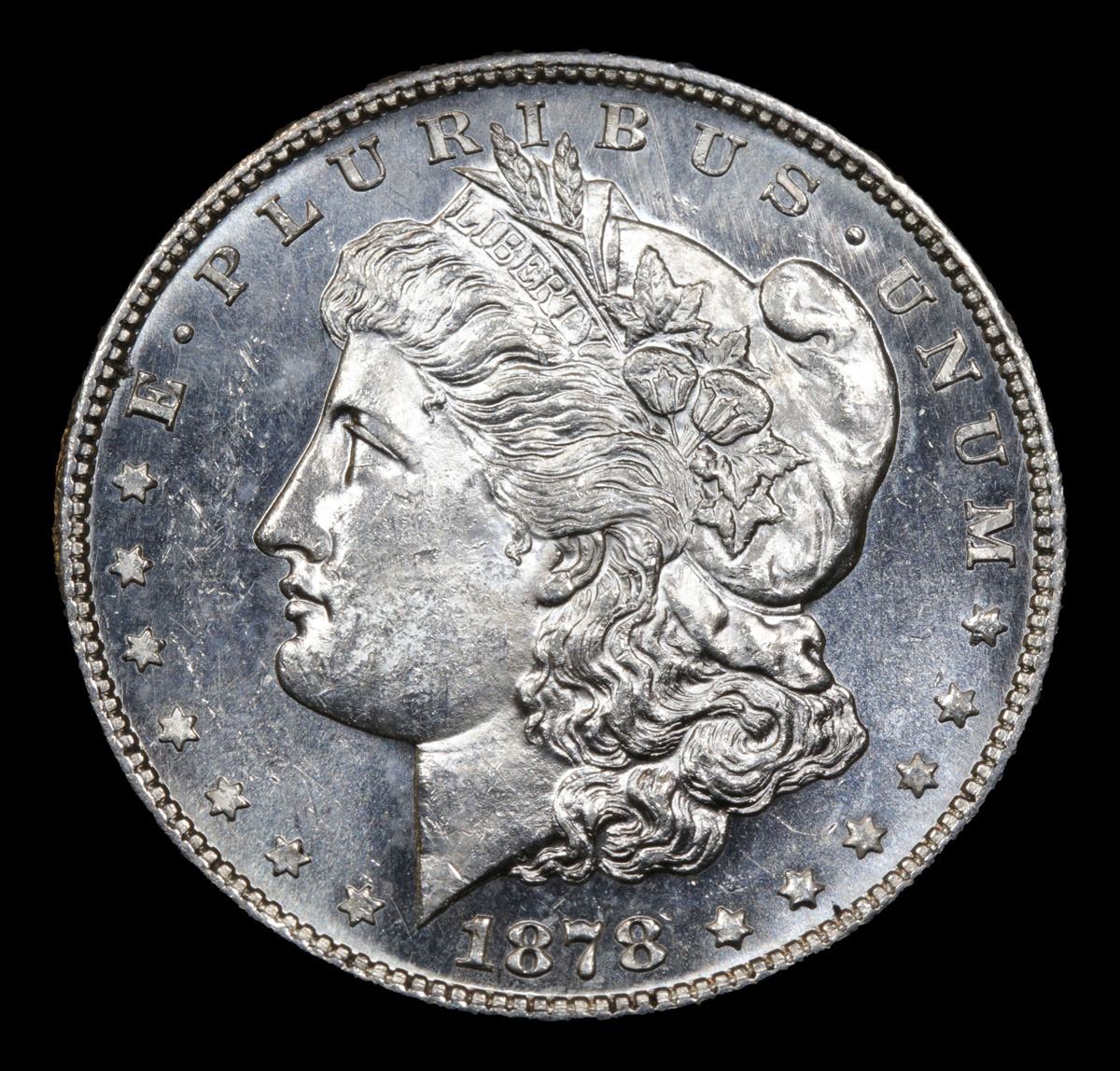 1878-s . Very Near Gem Morgan Dollar $1 Grades Choice Unc+ PL. Slightly better date. First year of issue.