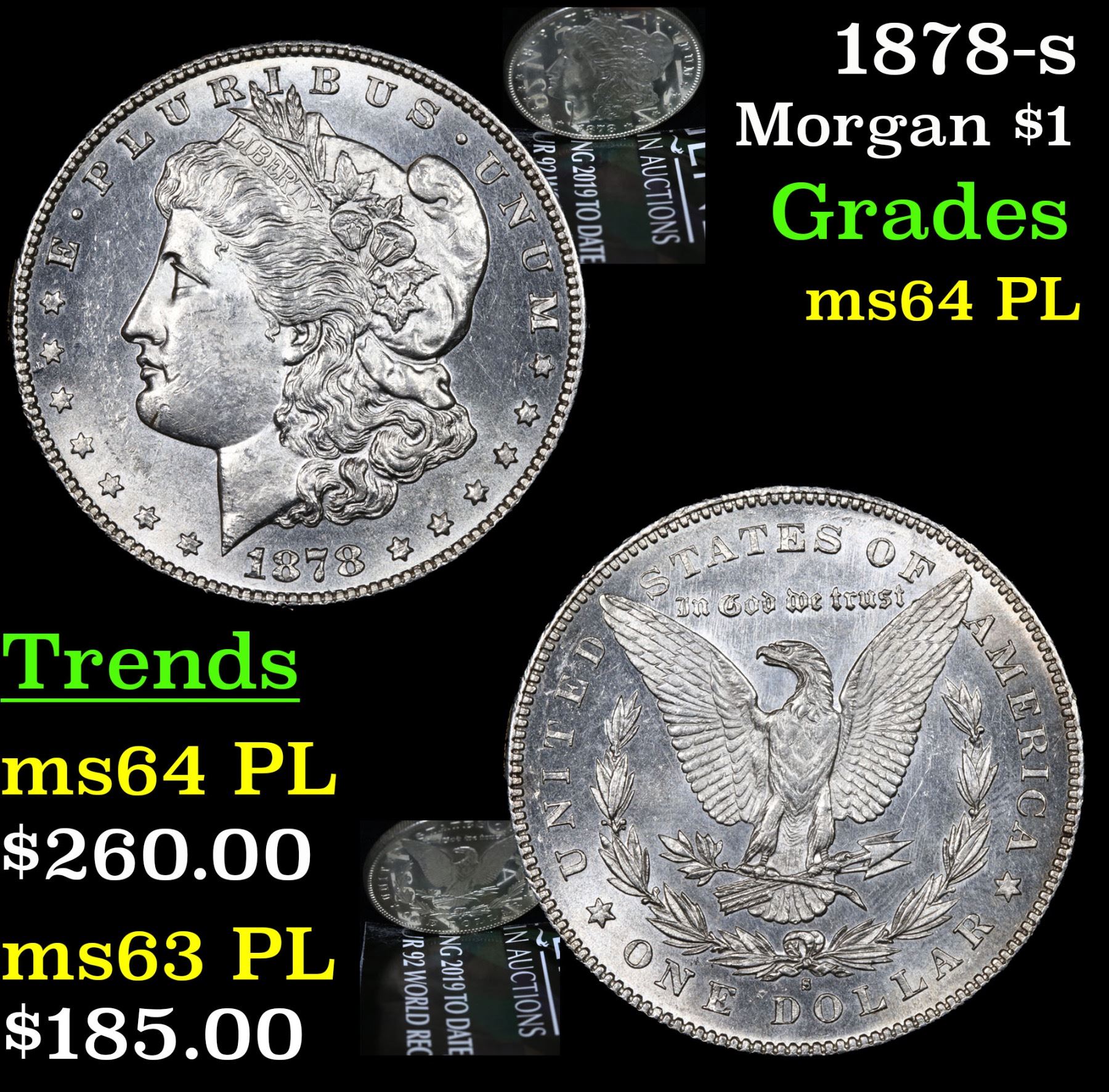 1878-s . . Morgan Dollar $1 Grades Choice Unc PL. Slightly better date. First year of issue.