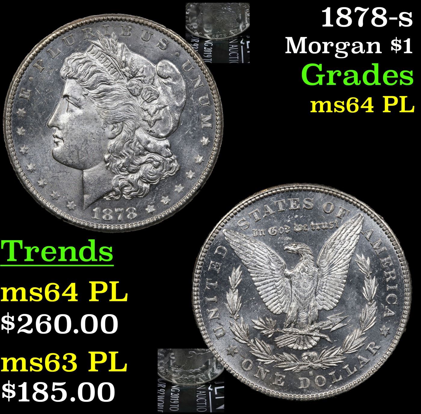 1878-s Morgan Dollar $1 Grades Choice Unc PL. Slightly better date. First year of issue.