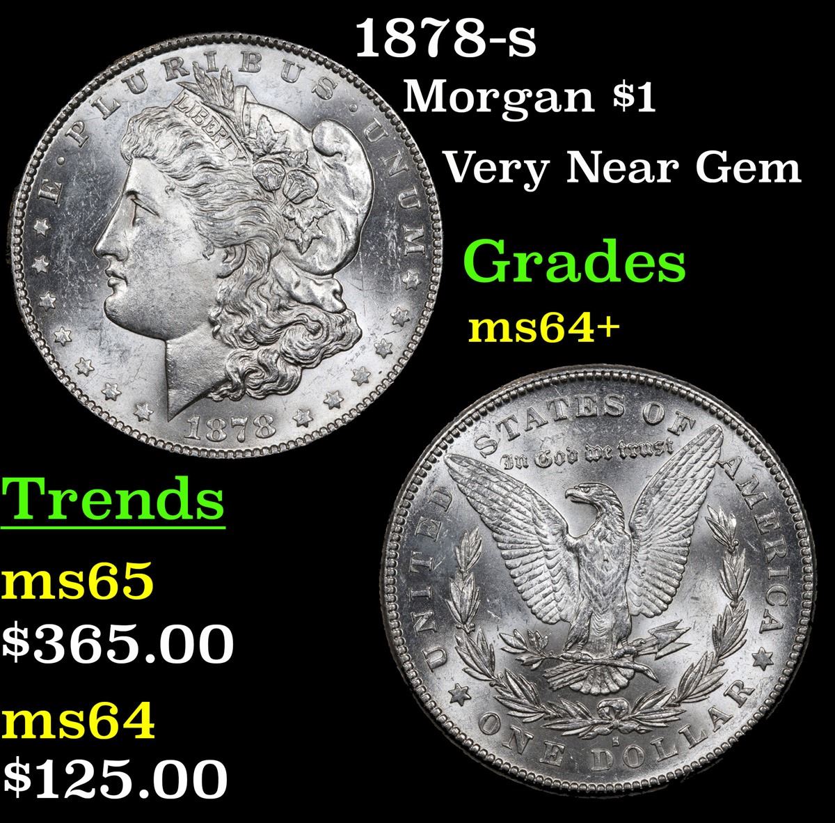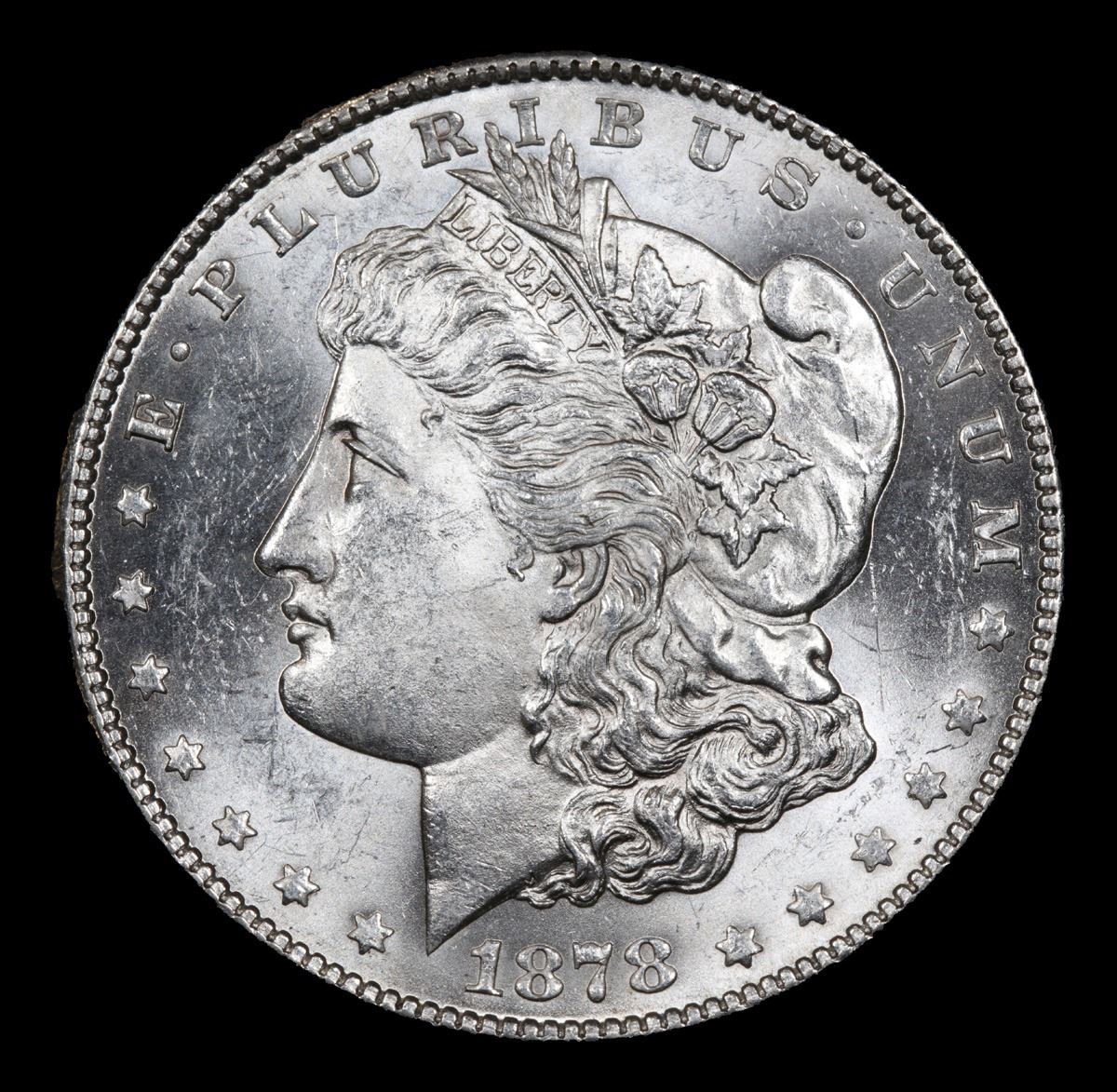 1878-s . Very Near Gem Morgan Dollar $1 Grades Choice+ Unc. Slightly better date. First year of issue.