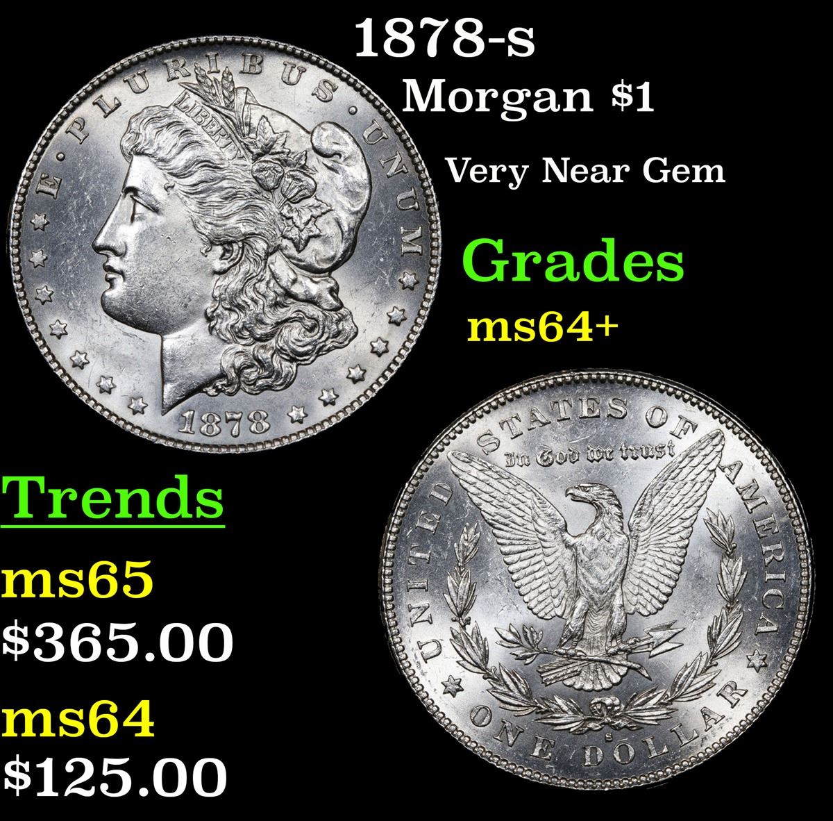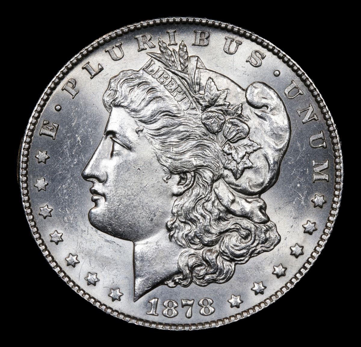 1878-s . Very Near Gem Morgan Dollar $1 Grades Choice+ Unc. Slightly better date. First year of issue.