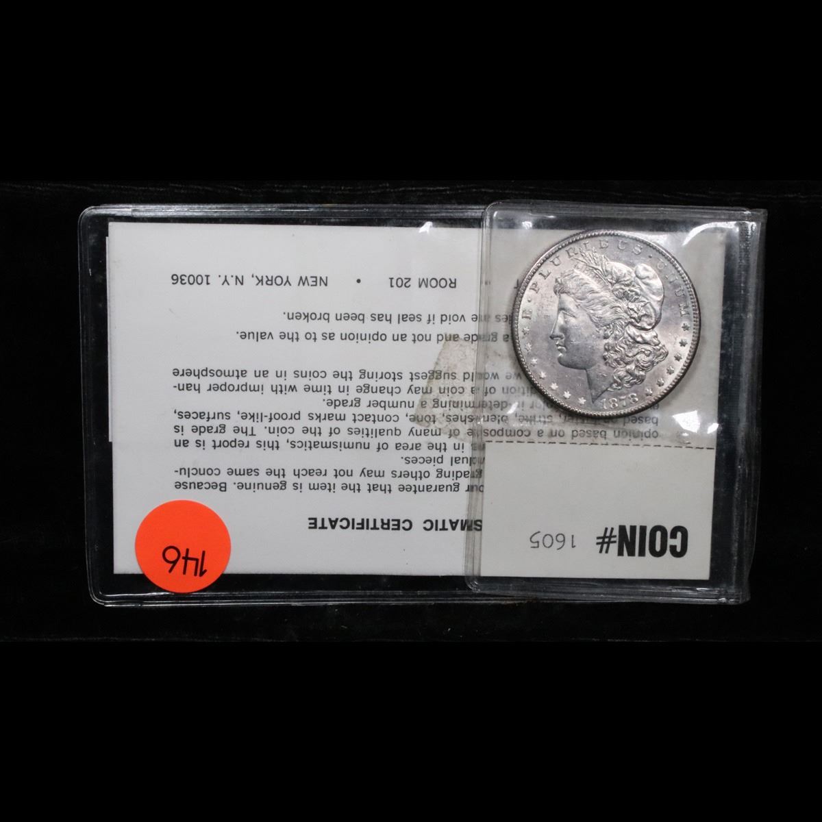 We DO NOT guarantee coin grades on any of our lots. Please study photos carefully and Video during the auction as well as asking questions before bidding. We may be reached at 856-685-9848 prior to the auction M-F 9am-5PM EST.