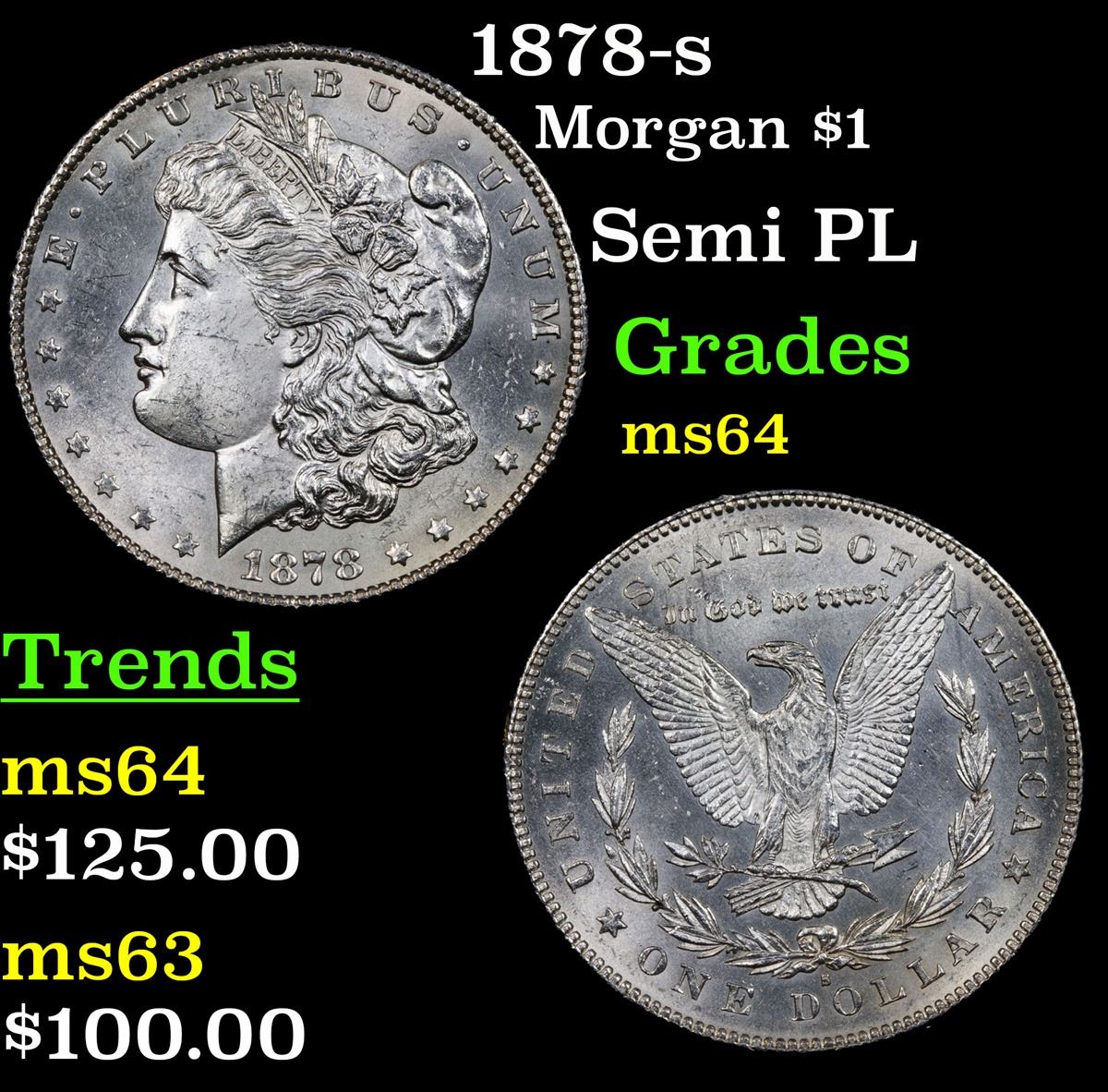 1878-s Morgan Dollar $1 Grades Choice Unc. Slightly better date. First year of issue.