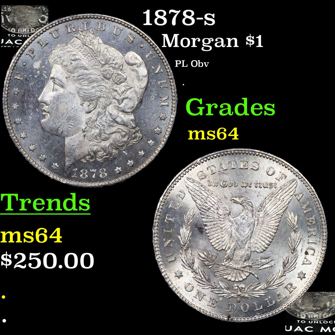 1878-s Morgan Dollar $1 Grades Choice Unc. Slightly better date. First year of issue.