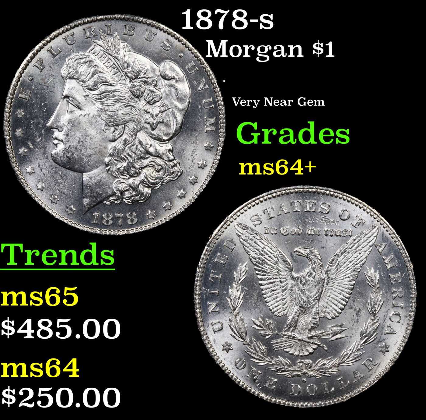 1878-s Morgan Dollar $1 Grades Choice+ Unc. Slightly better date. First year of issue.