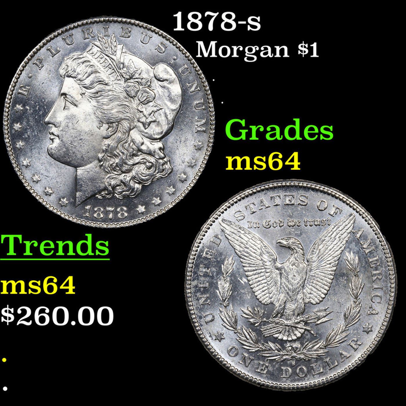 1878-s Morgan Dollar $1 Grades Choice Unc. Slightly better date. First year of issue.