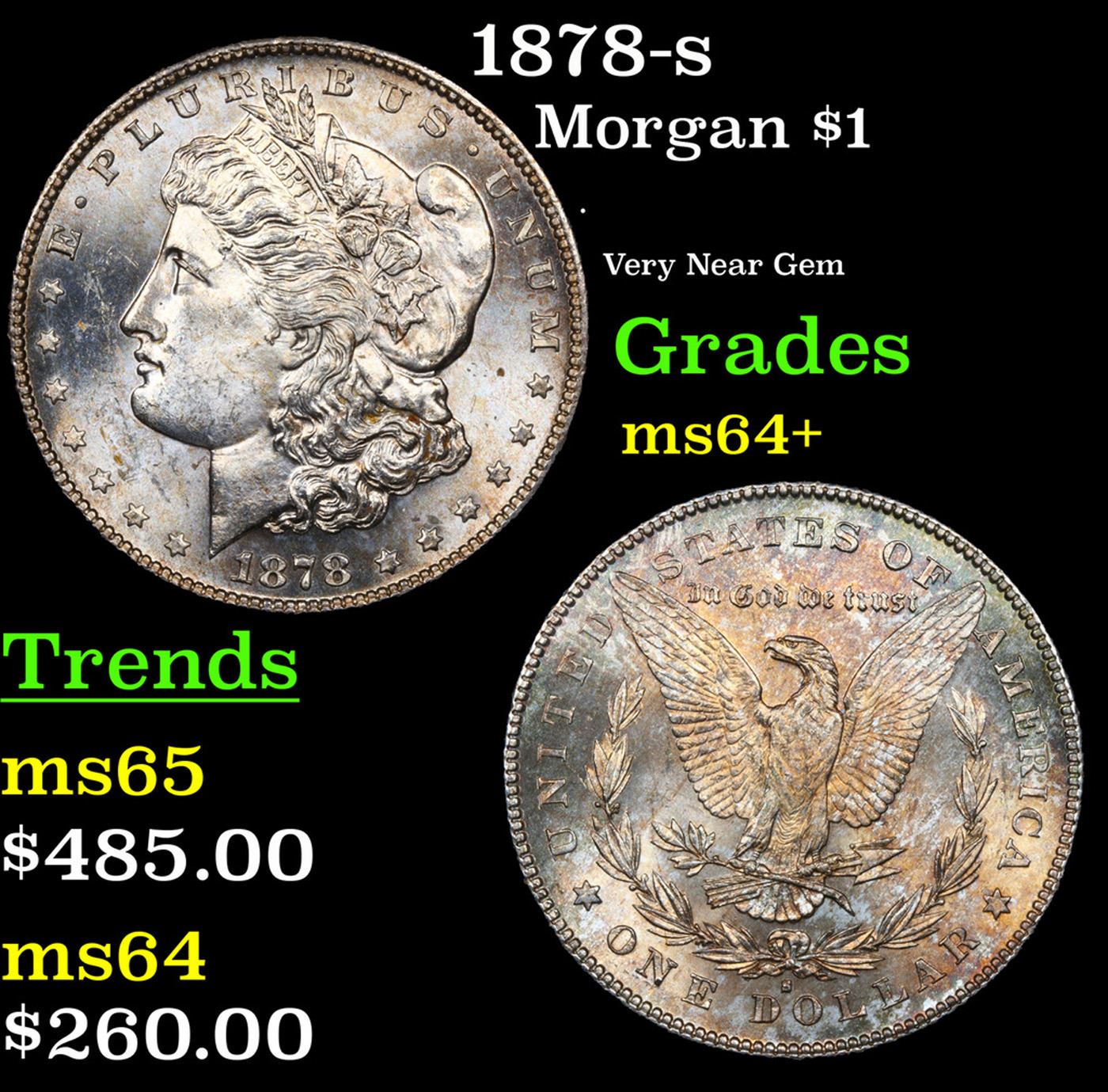 1878-s Morgan Dollar $1 Grades Choice+ Unc. Slightly better date. First year of issue.
