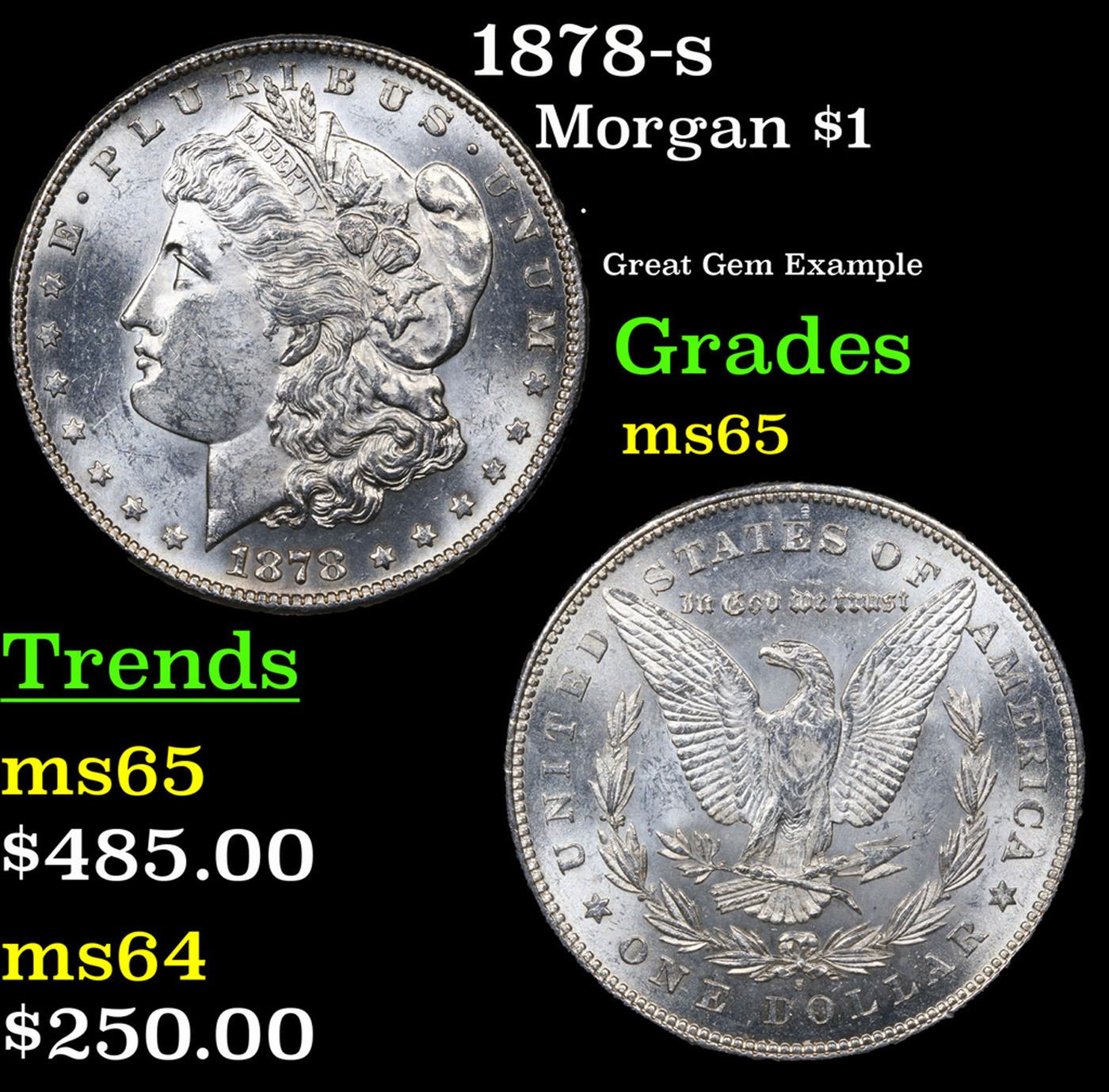 1878-s Morgan Dollar $1 Grades GEM Unc. Slightly better date. First year of issue.