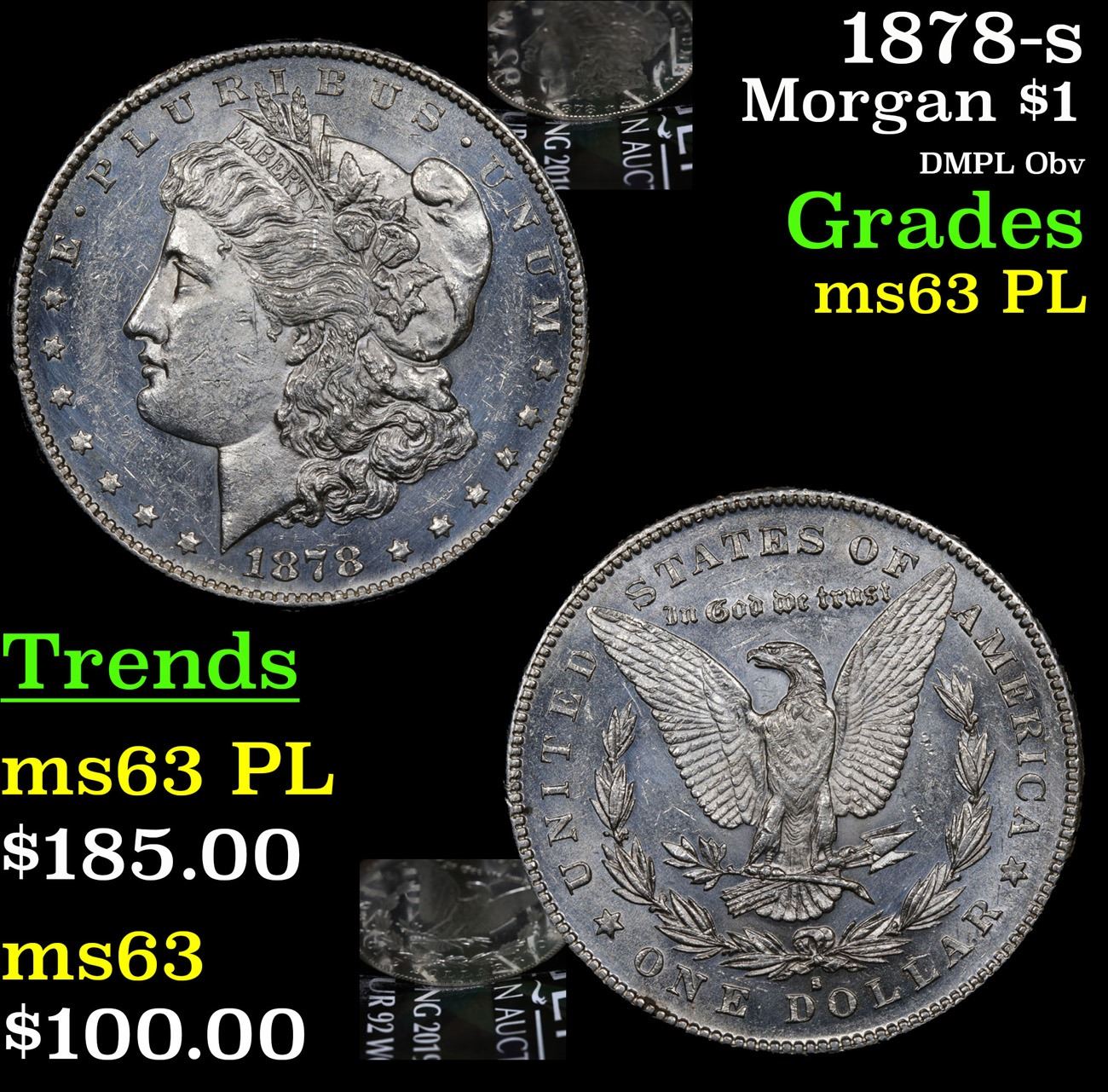 1878-s DMPL Obv . Morgan Dollar $1 Grades Select Unc PL. Slightly better date. First year of issue.