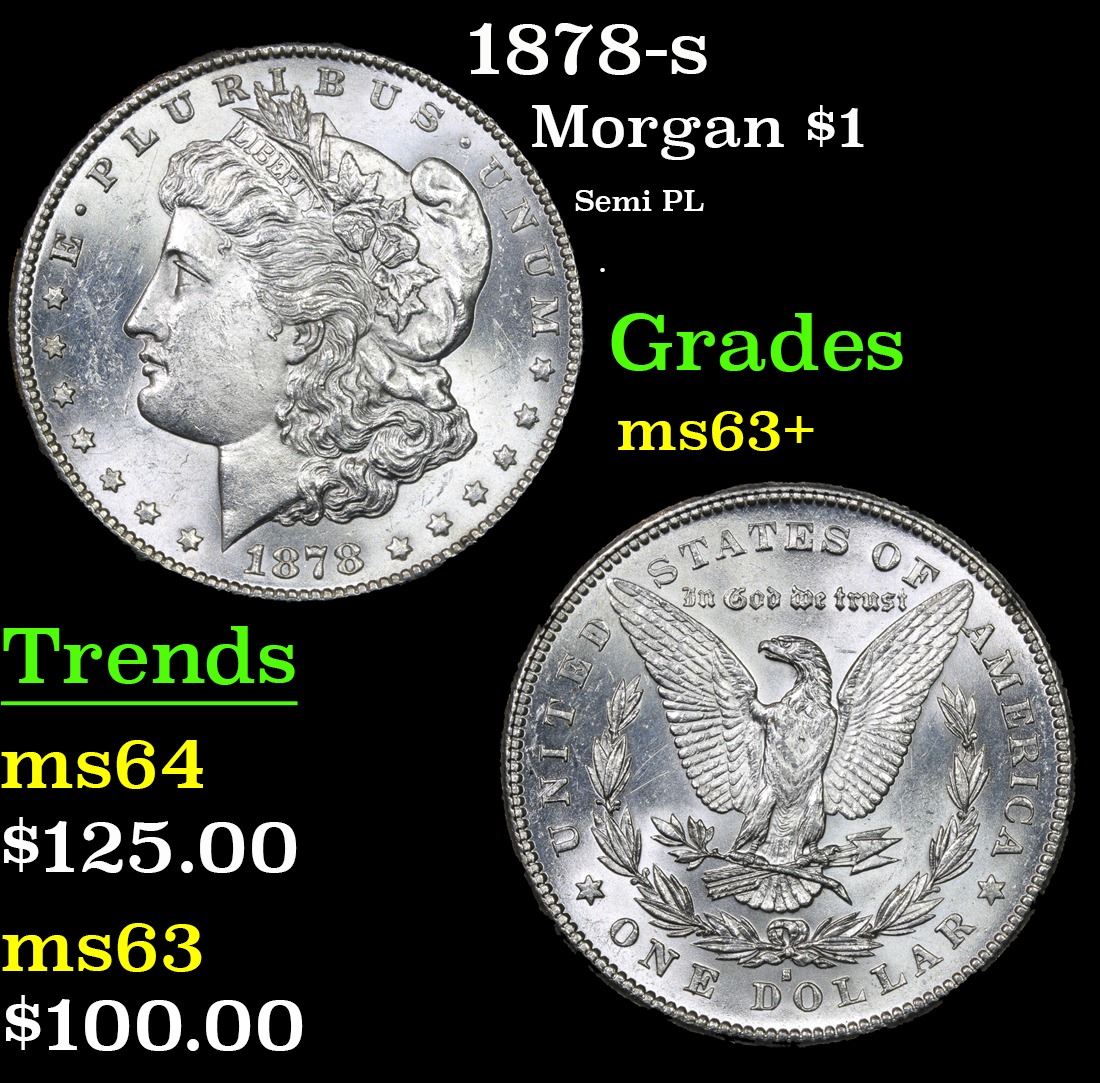 1878-s Semi PL . Morgan Dollar $1 Grades Select+ Unc. Slightly better date. First year of issue.