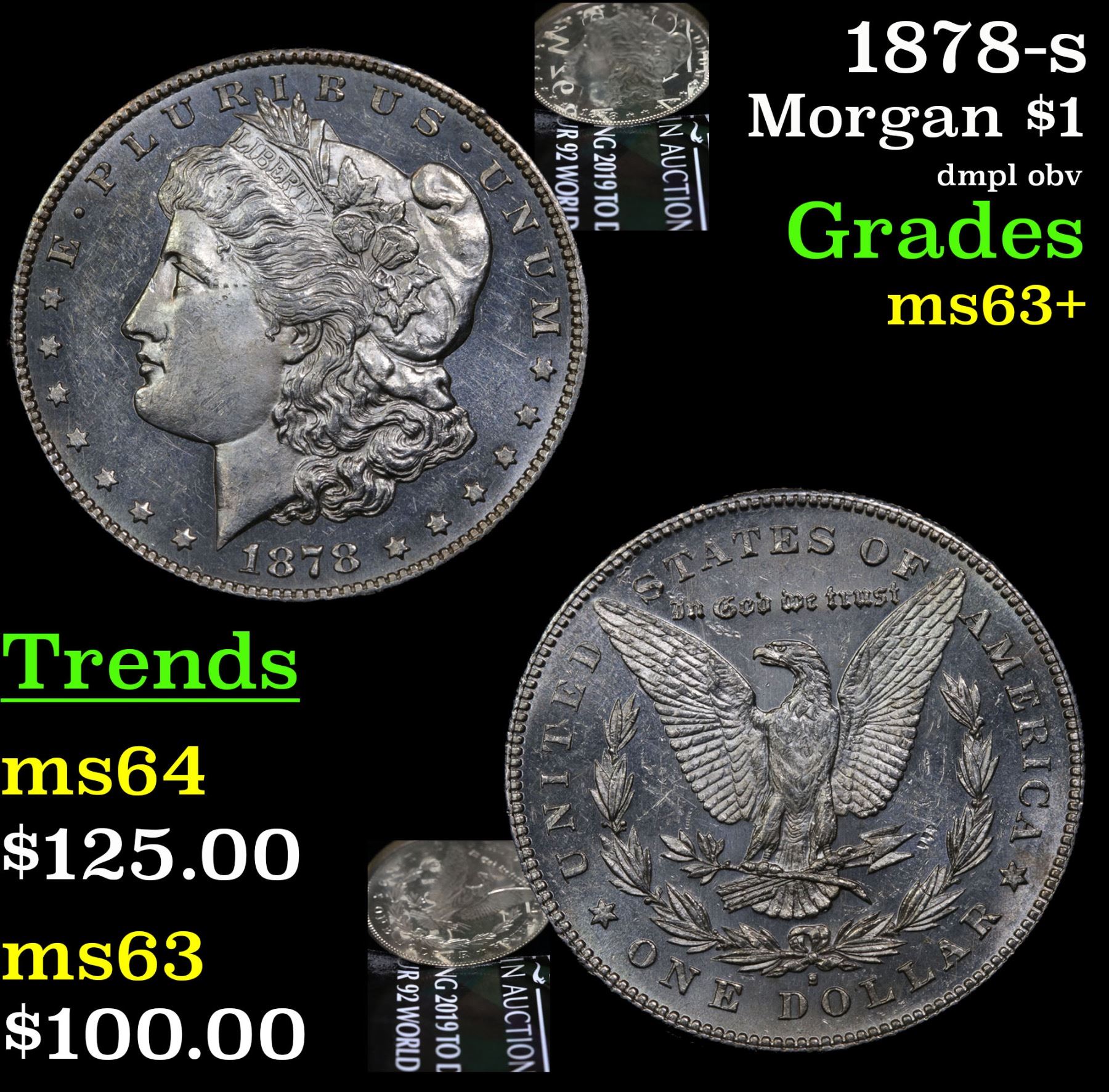 1878-s dmpl obv . Morgan Dollar $1 Grades Select+ Unc. Slightly better date. First year of issue.