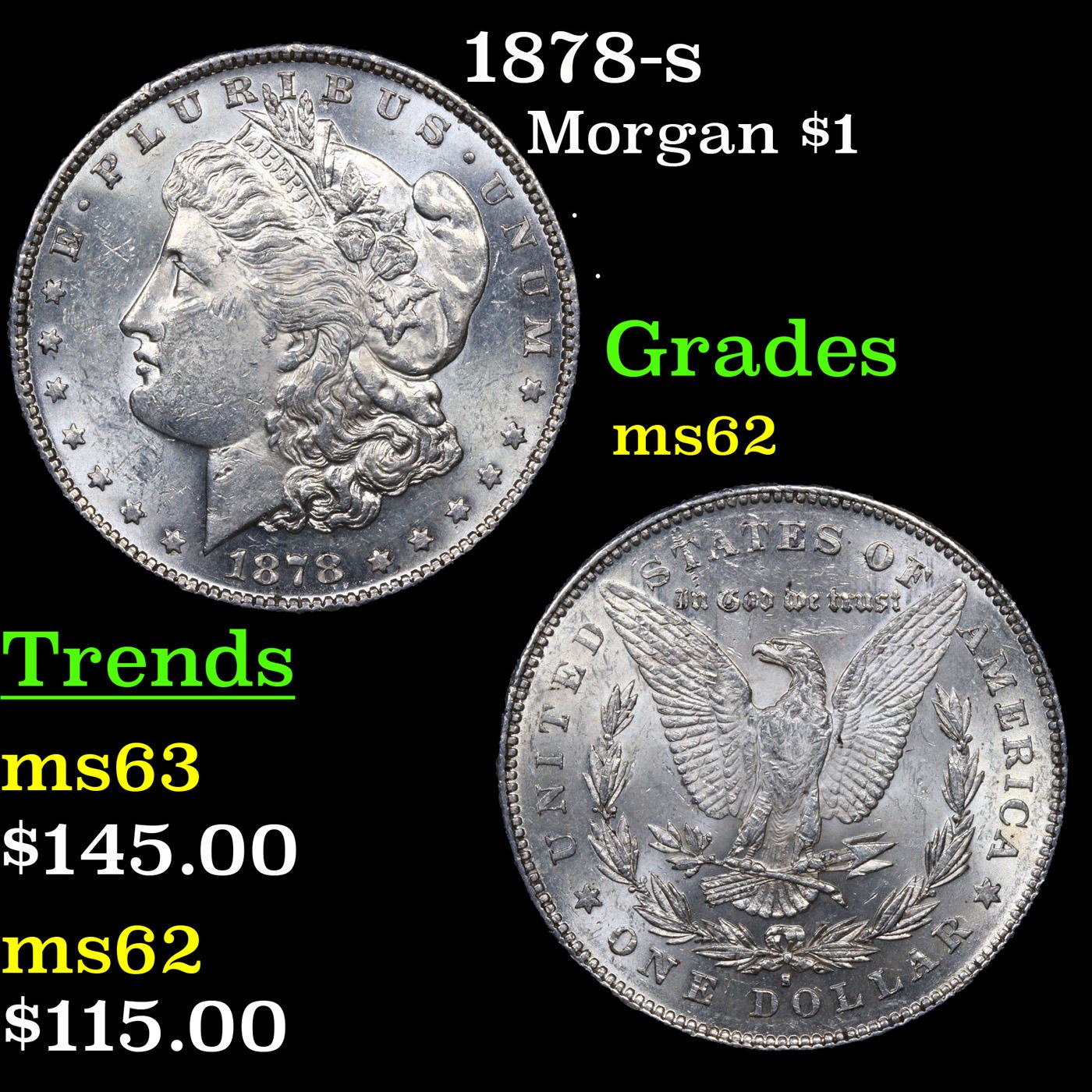 1878-s Morgan Dollar $1 Grades Select Unc. Slightly better date. First year of issue.
