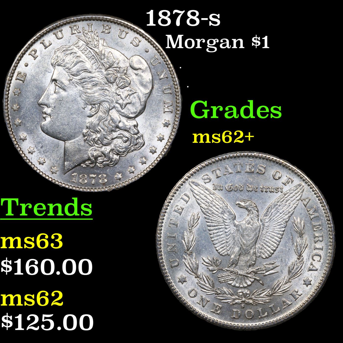 1878-s Morgan Dollar $1 Grades Select Unc. Slightly better date. First year of issue.