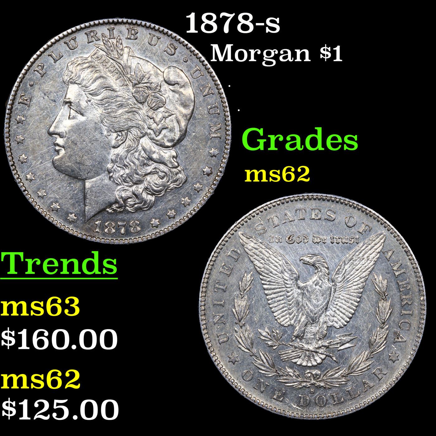 1878-s Morgan Dollar $1 Grades Select Unc. Slightly better date. First year of issue.