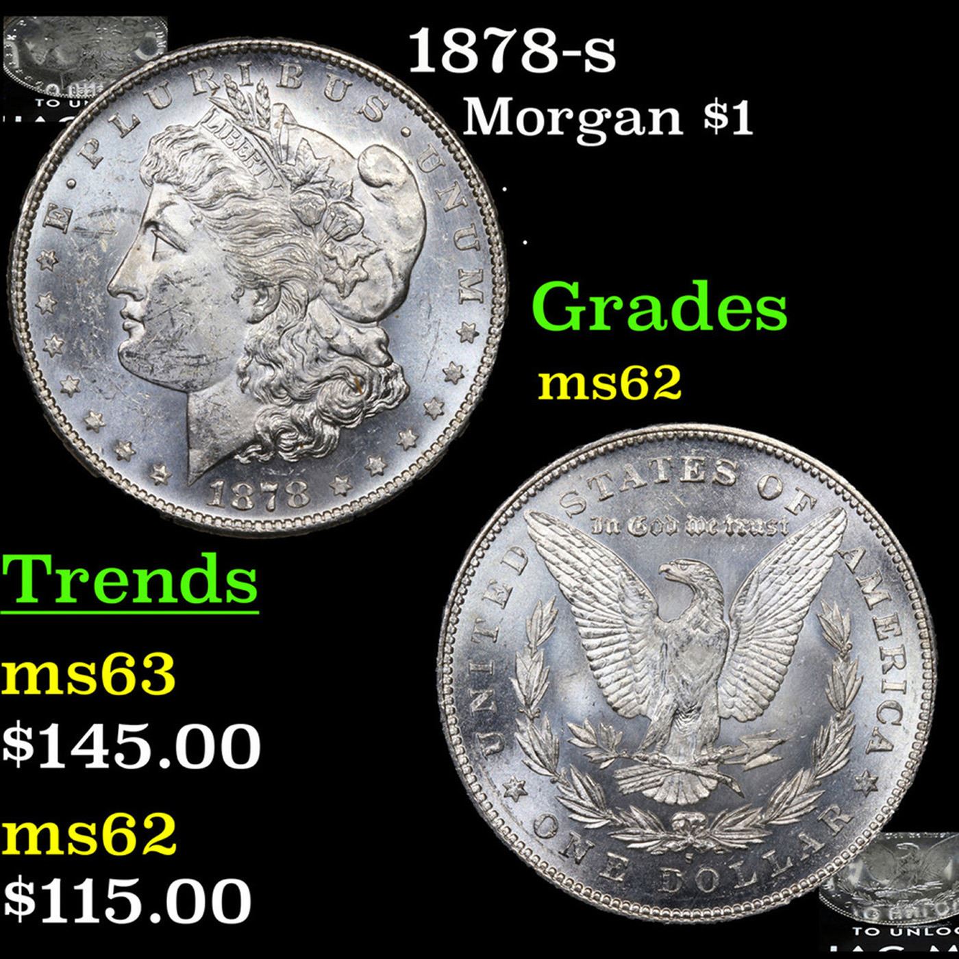 1878-s Morgan Dollar 1 Grades Select Unc. Slightly better date. First year of issue.