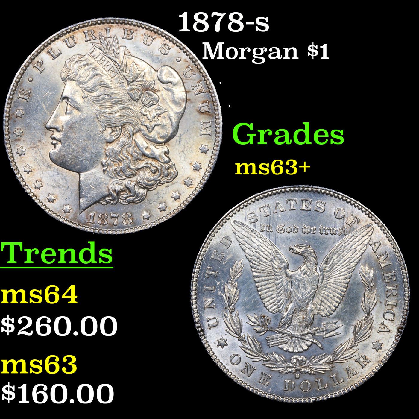 1878-s Morgan Dollar $1 Grades Select+ Unc. Slightly better date. First year of issue.