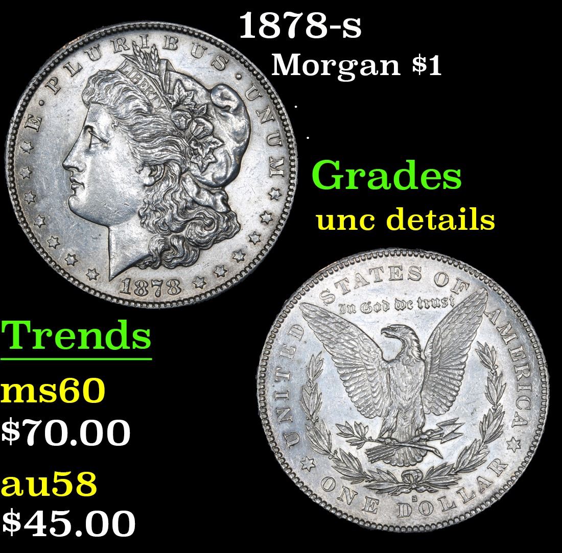 1878-s Morgan Dollar $1 Grades Unc Details. Slightly better date. First year of issue.