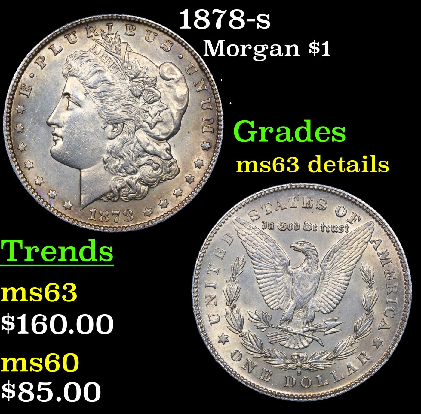 1878-s Morgan Dollar $1 Grades Unc Details. Slightly better date. First year of issue.