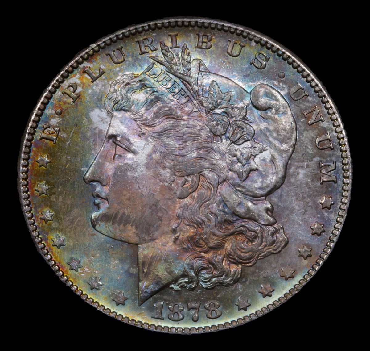 1878-s Rainbow Toned Morgan Dollar $1 Grades Select Unc.