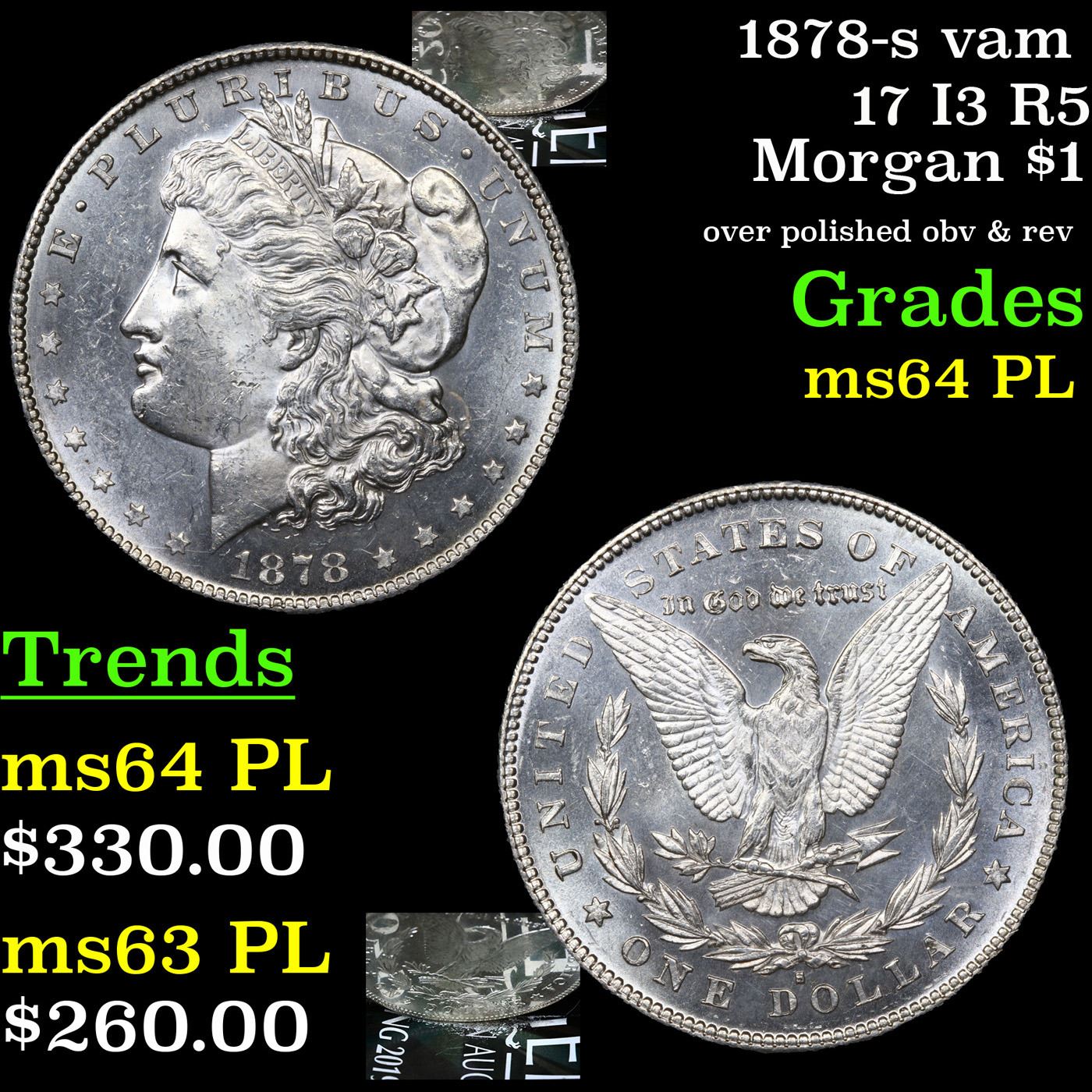 1878-s vam 17 I3 R5 Morgan Dollar $1 Grades Choice Unc PL.