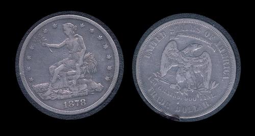 1878s Silver Trade Dollar in airtite. F/F+. Nice details