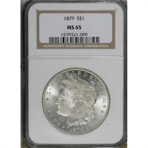 <B>1879 $1 MS65 NGC.</B></I> . NGC Census: (553/47). PCGS Population (787/80). Mintage: 14,807,100. Numismedia Wsl. Price for NGC/PCGS coin in MS65: $660. (#7084)<BR><BR><B>Coin Engraver:</B> George T. Morgan<BR><BR><b>Shipping:</b> Coins & Currency (<a target="_blank" href="http://www.heritageauctions.com/common/shipping.php">view shipping information</a>)