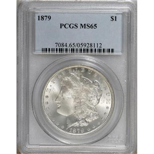 <B>1879 $1 MS65 PCGS.</B></I> This piece is sharply detailed and highly lustrous with excellent eye appeal. Although not rare at this grade level, it is elusive in higher grades, with just 75 better examples certified by PCGS.<BR><BR><b>Shipping:</b> Coins & Currency (<a target="_blank" href="http://www.heritageauctions.com/common/shipping.php">view shipping information</a>)