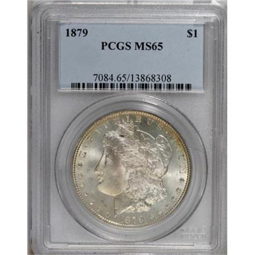 <B>1879 $1 MS65 PCGS.</B></I> PCGS Population (755/78). NGC Census: (554/47). Mintage: 14,807,100. Numismedia Wsl. Price for NGC/PCGS coin in MS65: $800. (#7084)<BR><BR><B>Coin Engraver:</B> George T. Morgan<BR><BR><b>Shipping:</b> Coins & Currency (<a target="_blank" href="http://www.heritageauctions.com/common/shipping.php">view shipping information</a>)