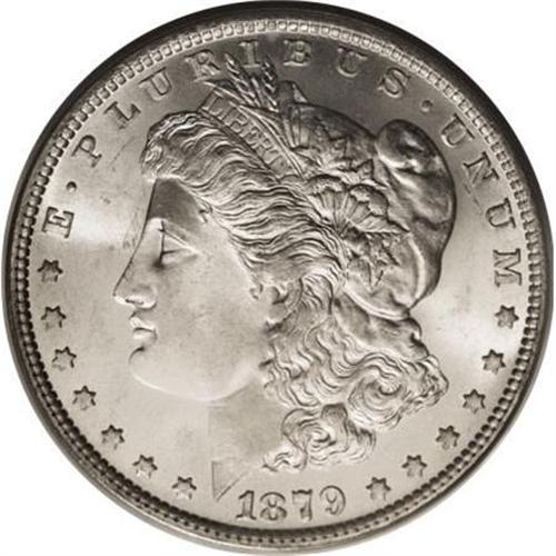 <B>1879 $1 MS66 PCGS.</B></I> The virtually unmarked surfaces exude a soft frosted mint luster, with only the slightest hint of champagne patina beginning to form on Liberty's cheek. The striking details are well brought up with only a hint of softness above the ear and on the eagle's breast. Minor repunching is evident on all four digits of the date. Very scarce in such a superior state of preservation with only 74 pieces so graded, at PCGS, and just one finer (6/07).<BR><BR><B>Coin Engraver:</B> George T. Morgan<BR><BR><b>Shipping:</b> Coins & Currency (<a target="_blank" href="http://www.heritageauctions.com/common/shipping.php">view shipping information</a>\)