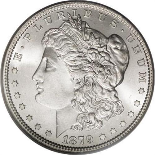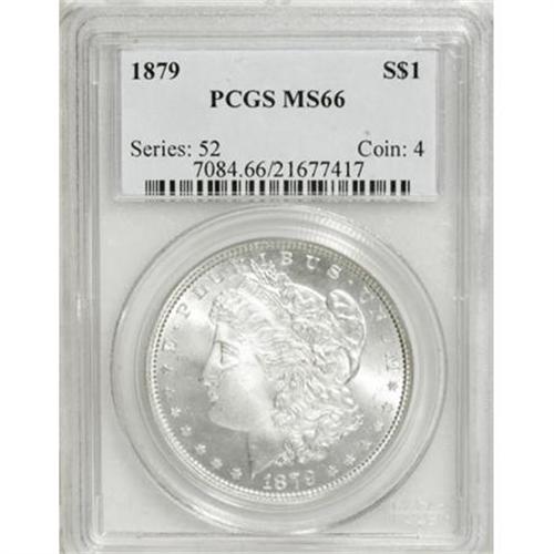 <B>1879 $1 MS66 PCGS.</B></I> A nearly perfect example of this issue, with a bold strike, blazing luster, and extremely clean fields and devices. The texture is uniformly frosty and the overall appeal is terrific. Although the mintage of this issue was a substantial 14.8 million coins, few have survived in the highest grades and the issue is considered an important condition rarity. Population: 79 in 66, 1 finer (12/07).<BR><I>From The Motor City Collection.</B></I><BR><BR><B>Coin Engraver:</B> George T. Morgan<BR><BR><b>Shipping:</b> Coins & Currency (<a target="_blank" href="http://www.heritageauctions.com/common/shipping.php">view shipping information</a>)