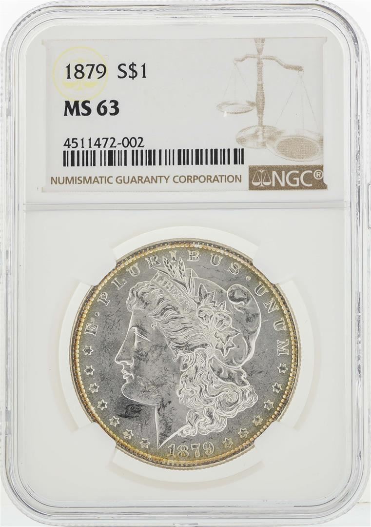One 1879 $1 Morgan Silver Dollar Coin NGC MS63. NGC Certified.
