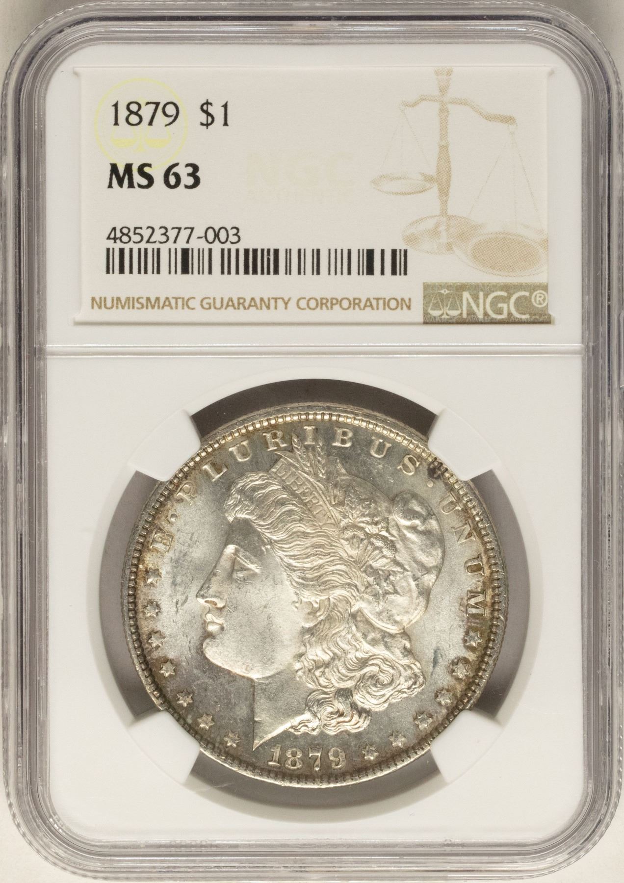 One 1879 $1 Morgan Silver Dollar Coin NGC MS63.