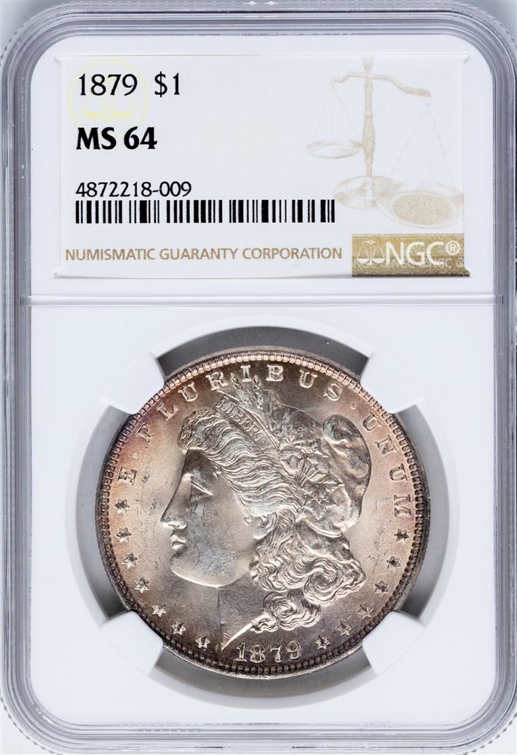 One 1879 $1 Morgan Silver Dollar Coin NGC MS64 Nice Toning. NGC Certified.