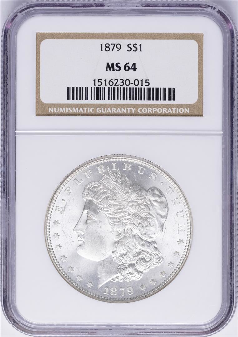 One 1879 $1 Morgan Silver Dollar Coin NGC MS64. NGC Certified.