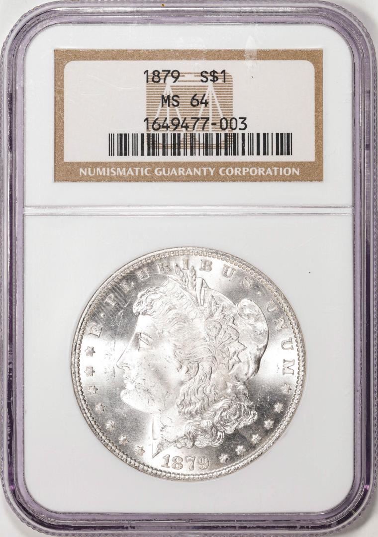 One 1879 $1 Morgan Silver Dollar Coin NGC MS64. NGC Certified.