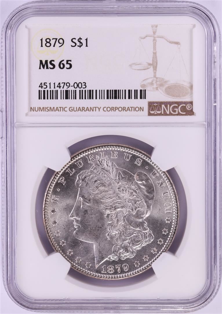 One 1879 $1 Morgan Silver Dollar Coin NGC MS65. NGC Certified.
