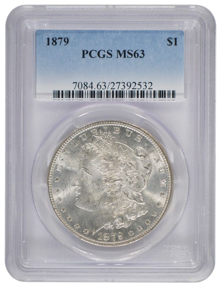 One 1879 $1 Morgan Silver Dollar Coin PCGS MS63.